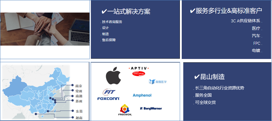 主營高標準非標定制設備,3C、電鍍、沖壓、FPC、成型等多行業上下料設備,視覺類軟硬件設備,并提供相關技術支持和整套解決方案。 自有視覺團隊提供非標設備常規視覺服務。與業界頂尖視覺公司長期合作,一站式提供外觀檢AI深度學習服務。